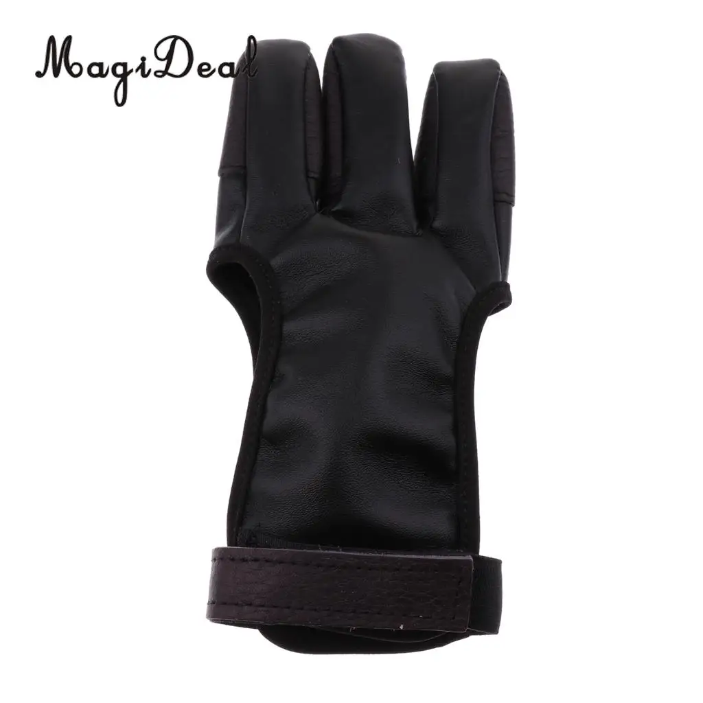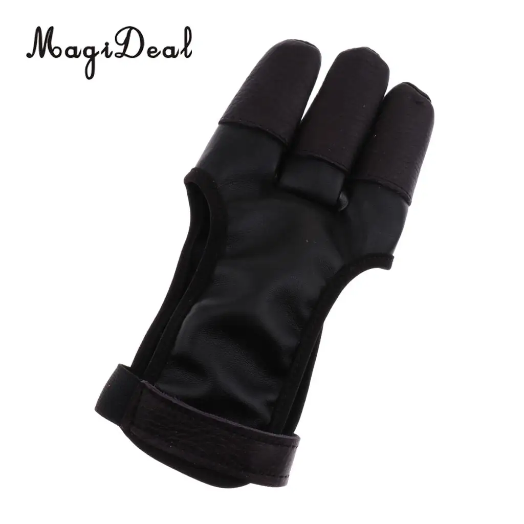 Перчатка MagiDeal для стрельбы из лука с тремя пальцами, мягкая и прочная, подходит для левой или правой руки черного цвета