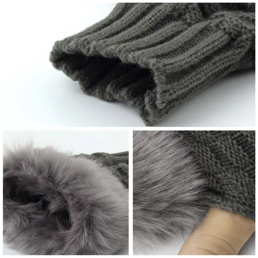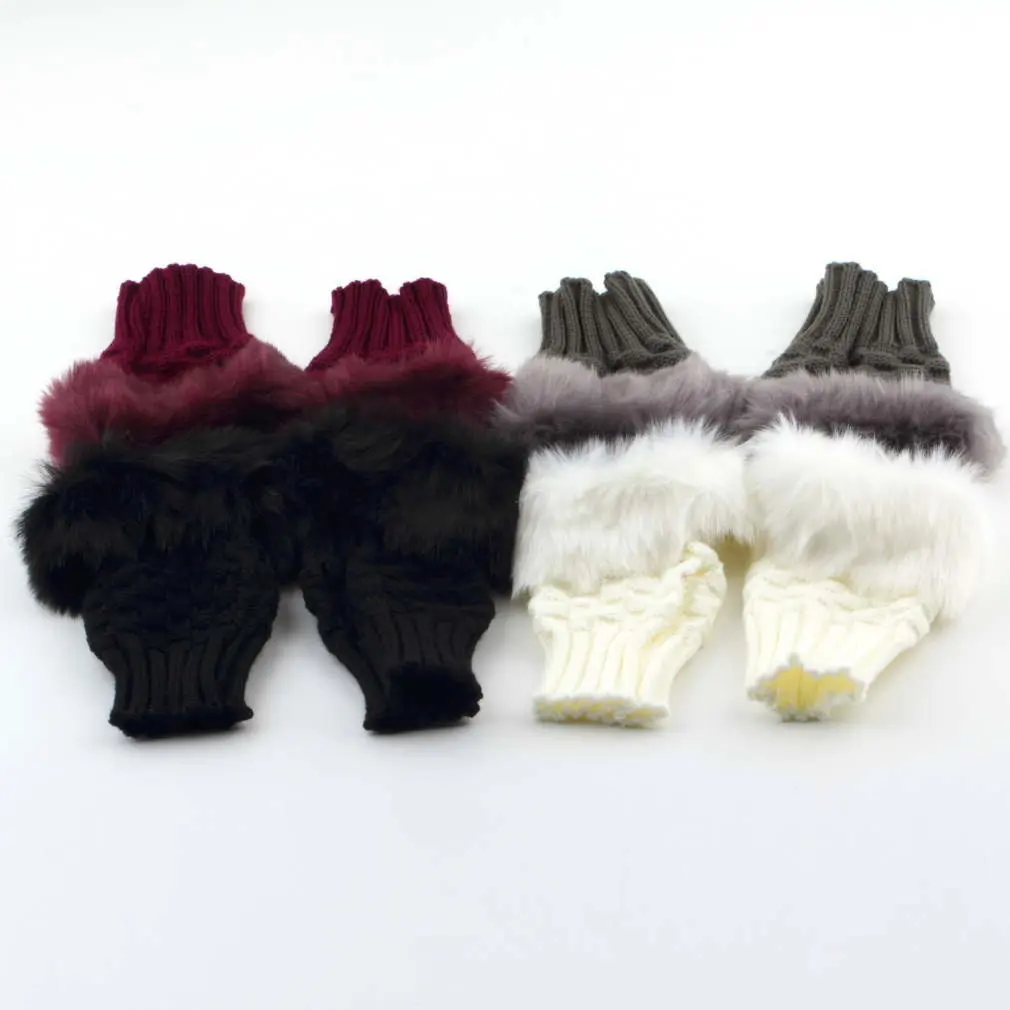 Перчатки без пальцев для девочек Милая обувь на платформе из искусственного кроличьего меха; Сапоги вязаные перчатки для женщин зимние вяз...