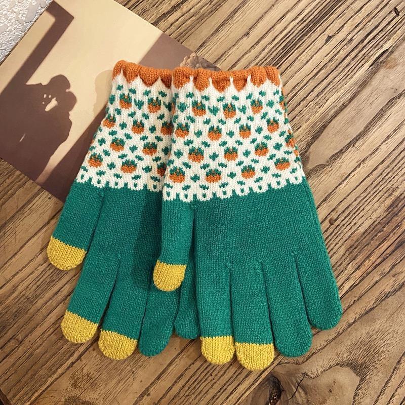 Перчатки женские зимние утолщенные и бархатные пятипалые студенческие милые шерстяные вязаные для сохранения тепла при езде на велосипеде зимой one size fits all зелёный