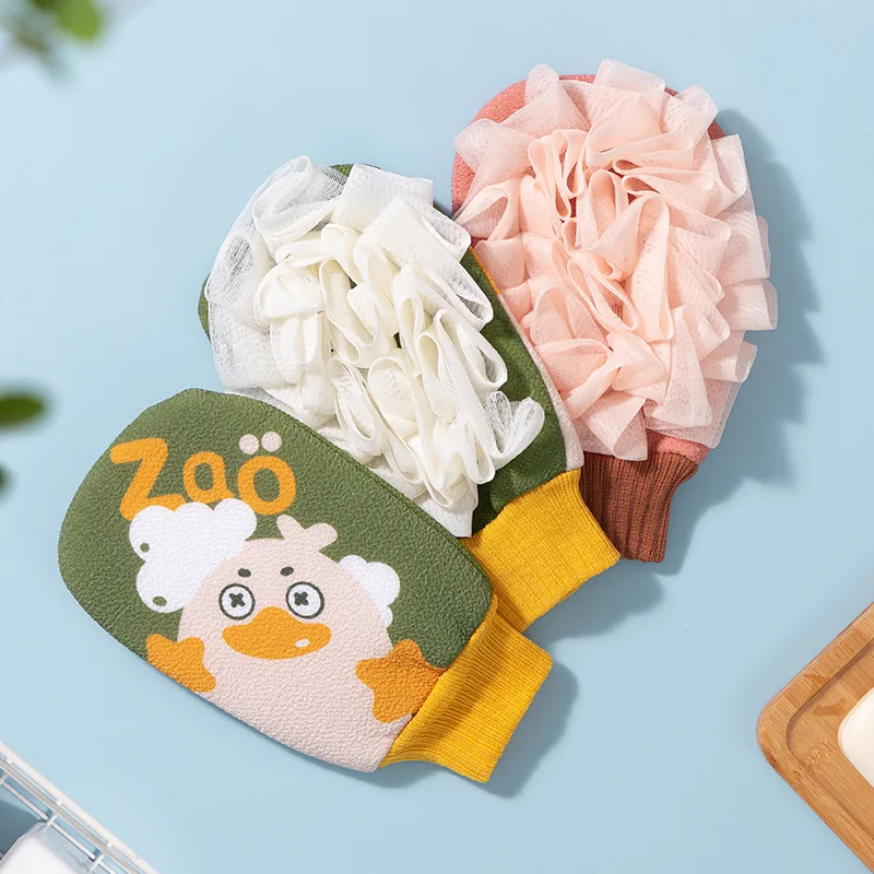Перчатки с героями мультфильмов. Двустороннее банное полотенце. Шарик для ванны не повреждает кожу. Мощный ясень для растирания.