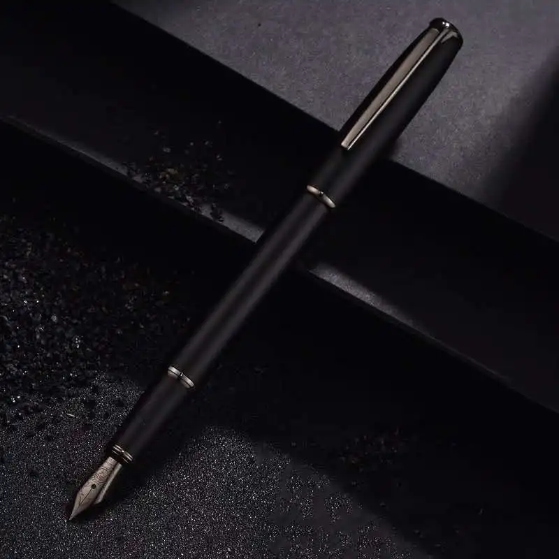 Перьевая ручка Picasso Pimio, черная металлическая чернильная ручка, титановая черная ручка EF/Fine/изогнутое перо, канцелярские принадлежности, офи...
