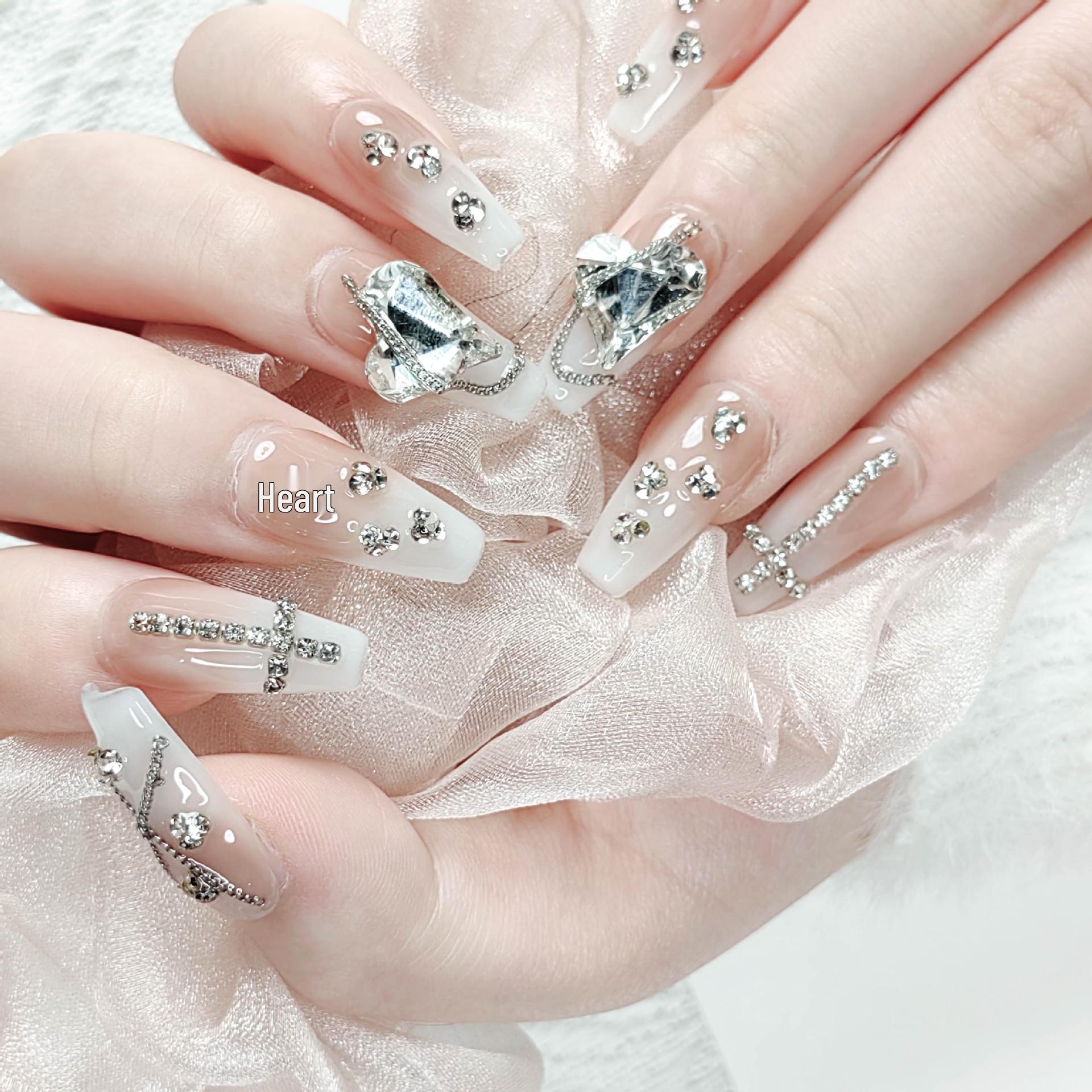 Печать Сердце Замок Любви Телесно-розовый Цепь Бриллиант Длинные Гелевые Ногти - Ручной работы Накладные Ногти XS (Includes 5-piece set)