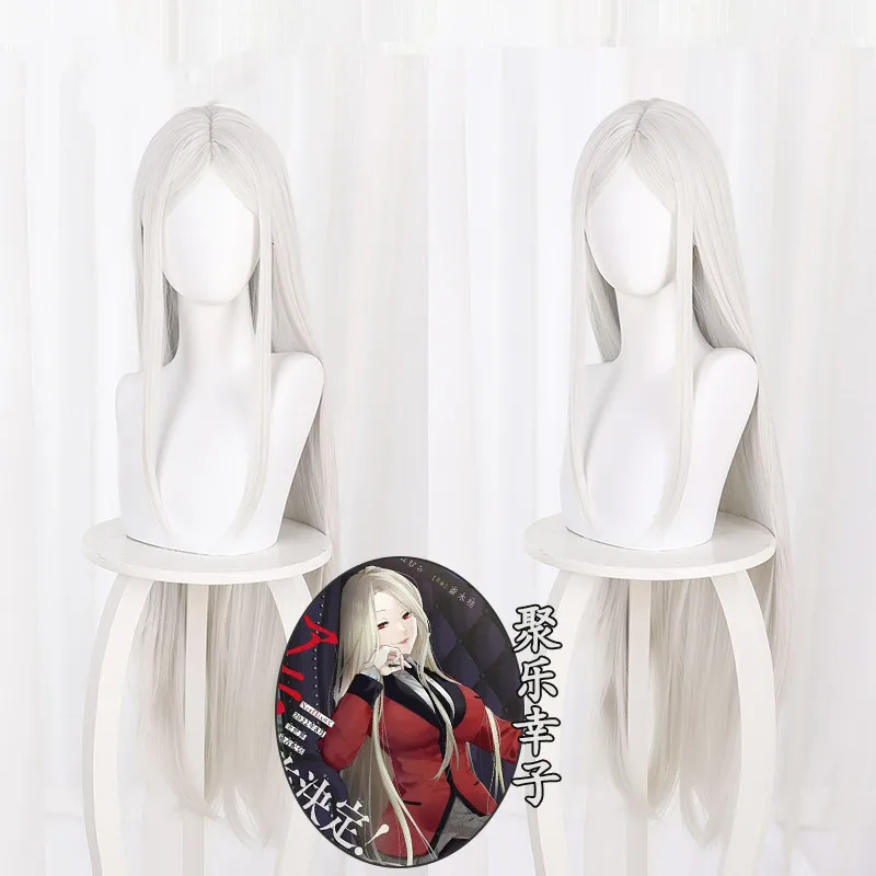 Парик для косплея аниме «Juraku Sachiko», термостойкий, с длинными белыми волосами, с шапочкой, Kakegurui Twin Juraku Sachiko