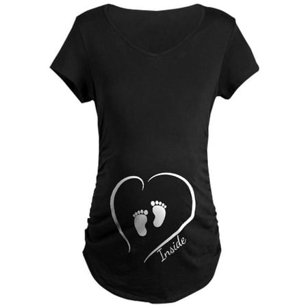CafePress - Baby Feet Inside Black Maternity T Shirt - Maternity Dark T-Shirt
