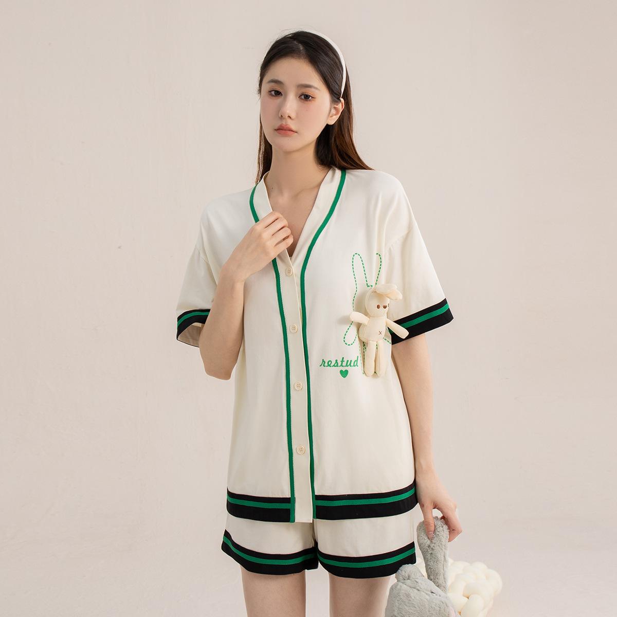 Пижама, женская летняя кукла-кролик, свободного кроя и модная, удобная повседневная, можно носить как домашнюю одежду с V-образным вырезом XXL бежевый