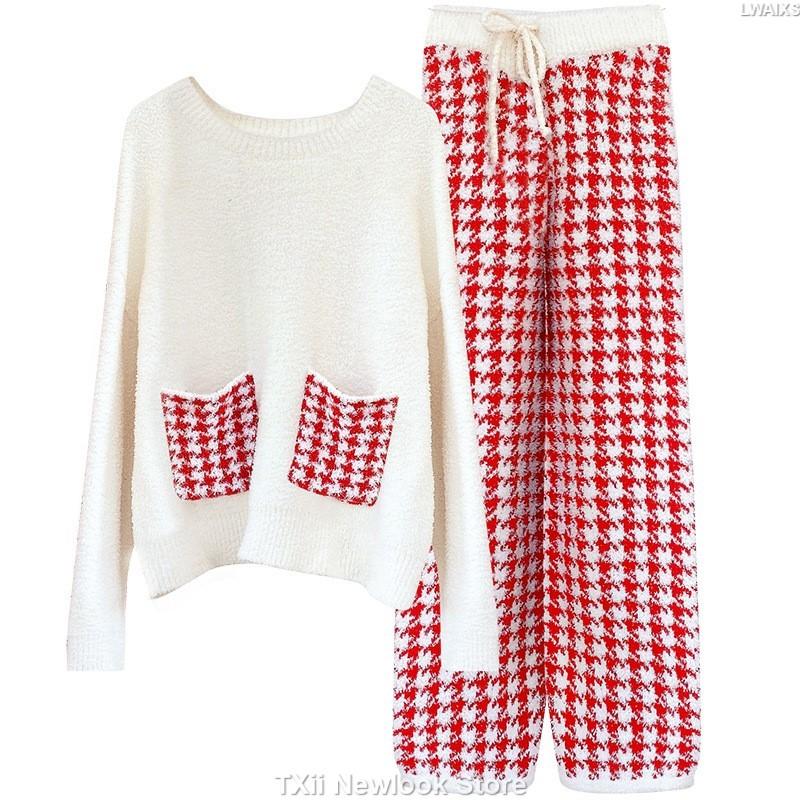Пижама женская осенне-зимняя мягкая утолщенная теплая с длинными рукавами и карманами в клетку, замедляющая старение домашняя одежда для верхней одежды One Size красный
