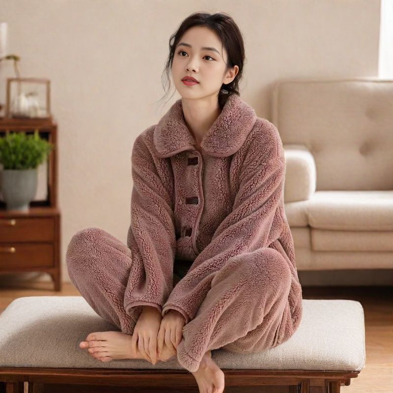 Пижама из кораллового флиса Женская Осенне-зимняя Плюс бархатный костюм с длинными рукавами и брюками Женская теплая домашняя одежда XXL красный
