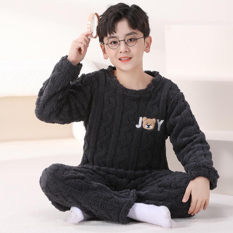 «Пижама из плотного плюша кораллового флиса для мальчиков на осень и зиму — фланелевая домашняя одежда для детей» Size 18 (Height 145-155cm)