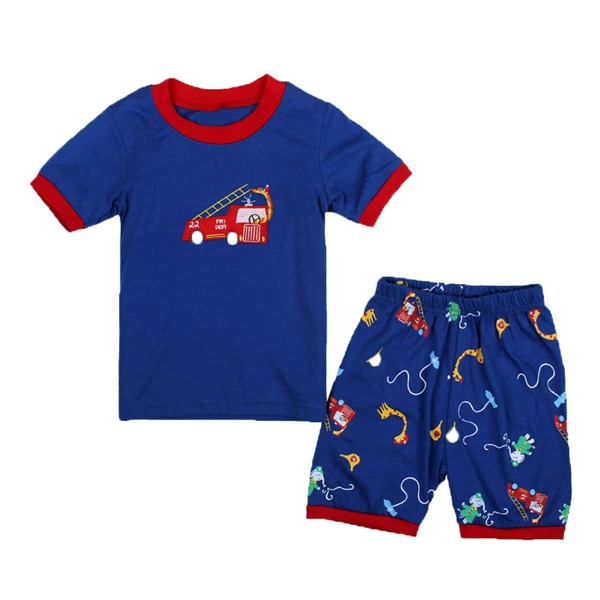 Темно-синий милый Короткий рукав Хлопок Мультяшный принт Шорты-костюм Легкий Эластичный Домашняя одежда для мальчиков, size features are:Bust: ,Length: ,Sleeve Length:Короткий рукав