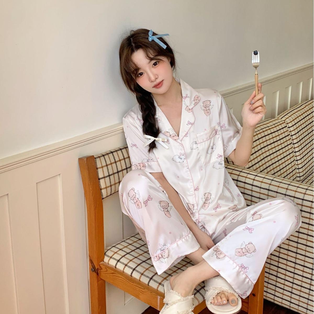 Пижама Angel Bear женская тонкая шелковая ледяная летняя новая милая фея стиль свежий стиль домашняя одежда костюм M белый