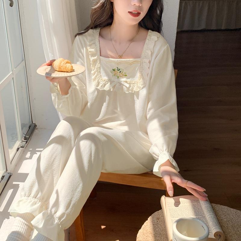 Пижамные комплекты женские с длинным рукавом и розовым бантом осенняя милая пижама принцессы мягкая удобная домашняя одежда нежная девичья уютная домашняя одежда M 40-50kg