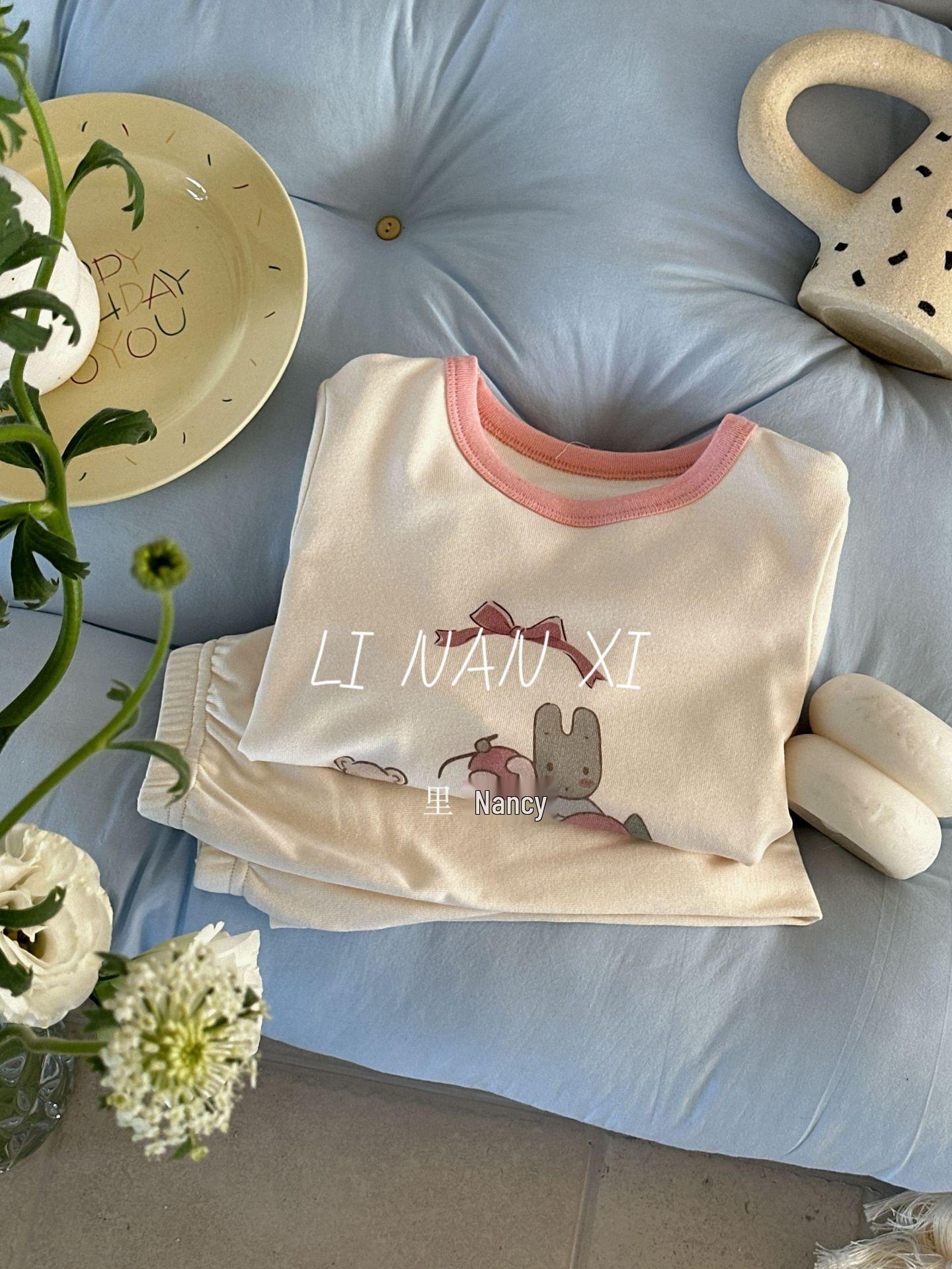 Пижамный комплект с мультяшным принтом для мальчиков и девочек: Весенняя детская одежда для сна с круглым вырезом 85002 100cm