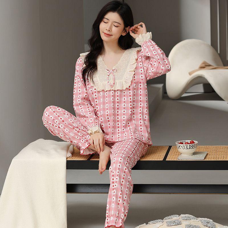 Пижамный костюм большого размера плюс 100 фунтов, женский, весна-осень, чистый хлопок, милая домашняя одежда, новые брюки с длинными рукавами, комплект домашней одежды 4XL