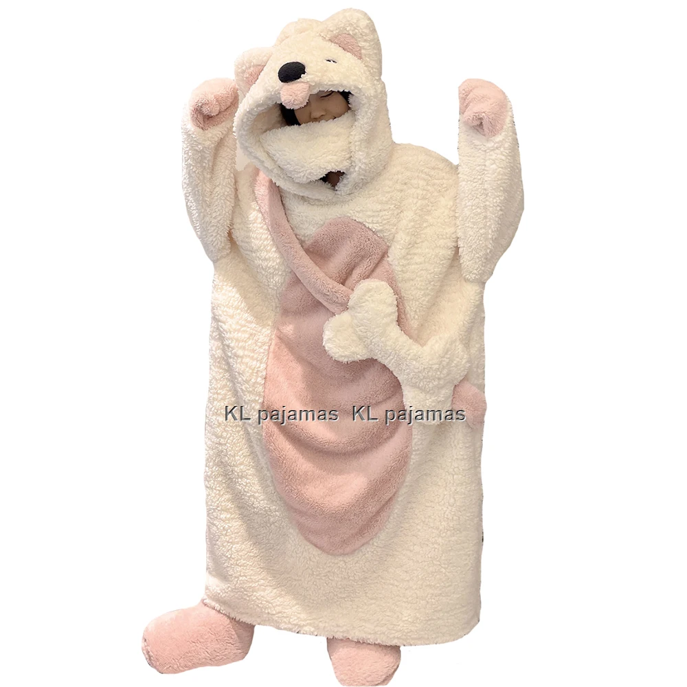 Пижамы для косплея с капюшоном «Белый медведь», пушистая длинная плюшевая фланелевая пижама с животными COS, свободная длинная ночная рубашка, ночная рубашка, кавайный ночной халат с героями мультфильмов