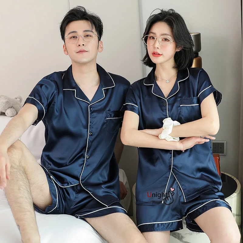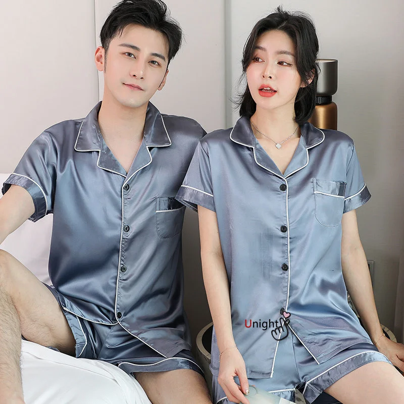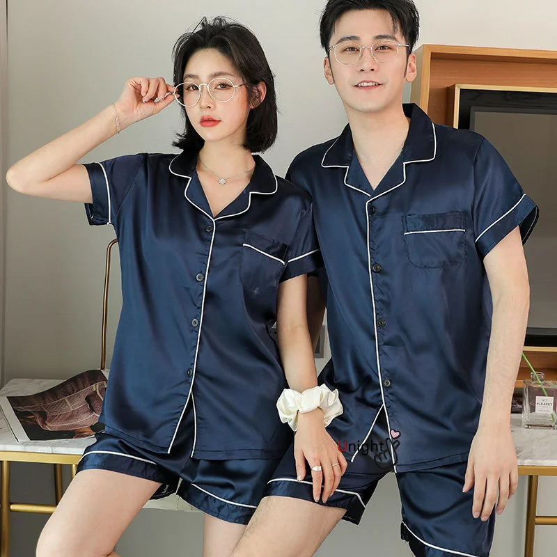 Пижамы для пар, мужские и женские парные шорты в комплекте, шелковая летняя Роскошная атласная Домашняя одежда больших размеров, костюм, топ и брюки