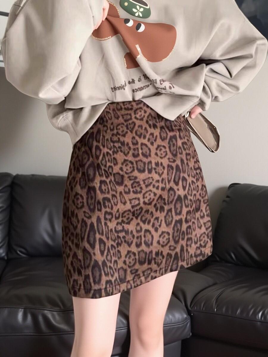 Пикантная мини-юбка А-силуэта с леопардовым принтом в стиле ретро для женщин - Высокая талия, Приталенная, Коллекция Осень/Зима 2024 Medium M чёрный