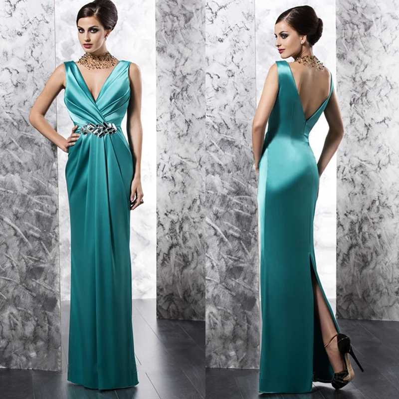 Пикантное длинное платье для матери невесты из нефрита с V-образным вырезом и разрезом на спине, платья для невесты до пола, платья для мамы н...