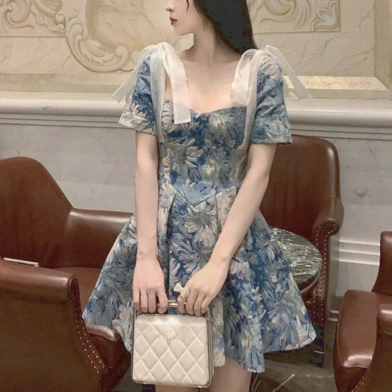 Пикантные Вечерние Платья-мини с принтом, Элегантная модная летняя одежда в Корейском стиле на шнуровке для женщин, дизайнерское винтажное ...