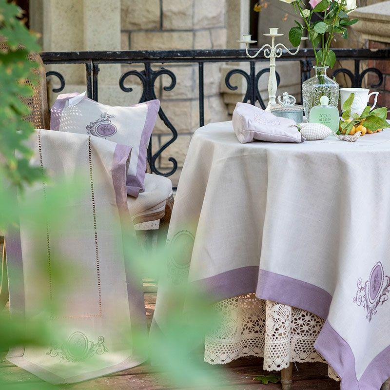 Пикник Внешняя Торговля Инс Вышитая Полиэстер Лен Скатерть для Обеденного Стола Light purple Table flag 45*150cm