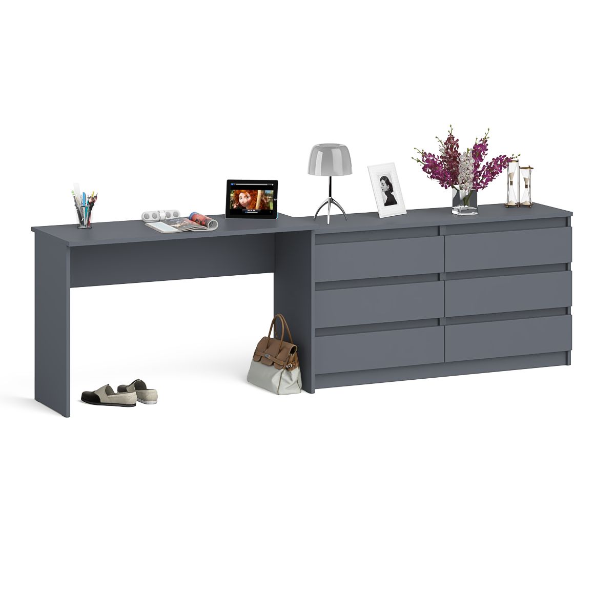 Письменный стол СВК Мори с широким комодом на 6-ть ящиков графит, 258х50х77 см, МСП1200.1+МК1380.6-ГФ