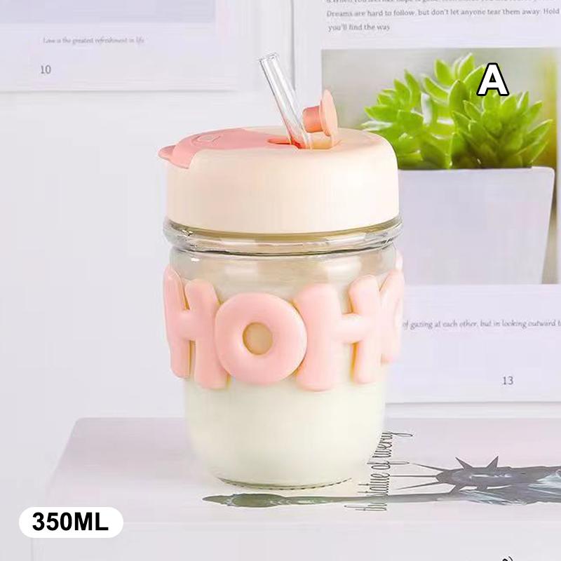 Питьевая чашка Прозрачное стекло Высокая ценность Защита от ожогов Милая чашка с соломинкой Жемчужный браслет Буква Водяная чашка