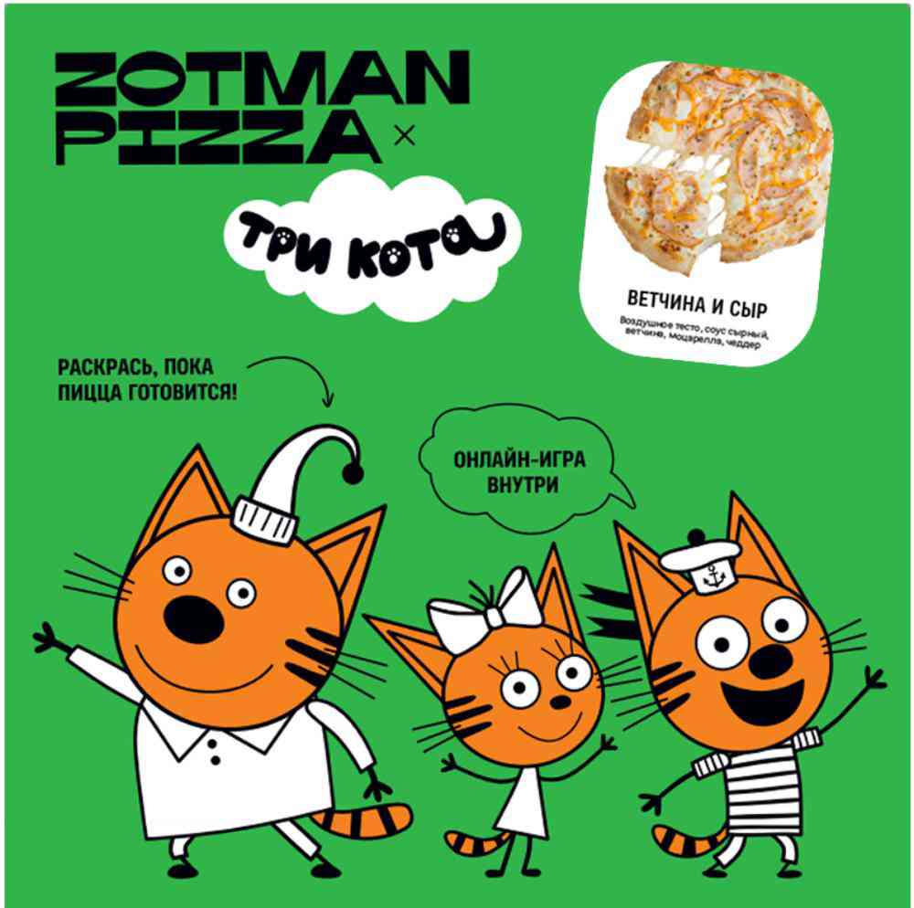 Пицца замороженная Zotman pizza Три кота Ветчина и сыр