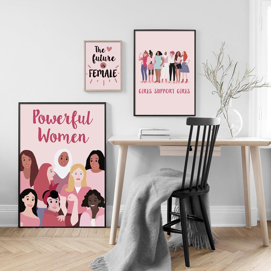 Плакат Декор для гостиной с принтом на стену, модный мир для девочек, женственная сила, иллюстрация, настенная живопись на холсте