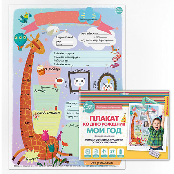 У Вашего ребенка скоро День Рождения? Хочется чего-то оригинального? Яркий плакат формата А2 "Мой День Рождения. Веселая Компания", проиллюстрированный художником, поможет креативным мамам и папам в подготовке ко дню рождения малыша. Нужно просто заполнить плакат, вписать все умения и увлечения главного героя праздника, заполнить семейное древо, вклеить фото "Было" и "Стало", отметить рост на ростомере, поместить фото главных достижений. Делайте на плакате зарисовки, фотоколлажи и все, что вам позволит Ваша фантазия. Заполняйте всей семьей!