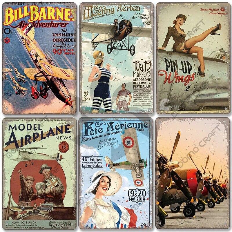 Плакат с самолетом, металлические жестяные знаки, винтажная модель самолета, встреча, Aerien, металлическая пластина, Настенный декор, бар, клуб, гараж, дом