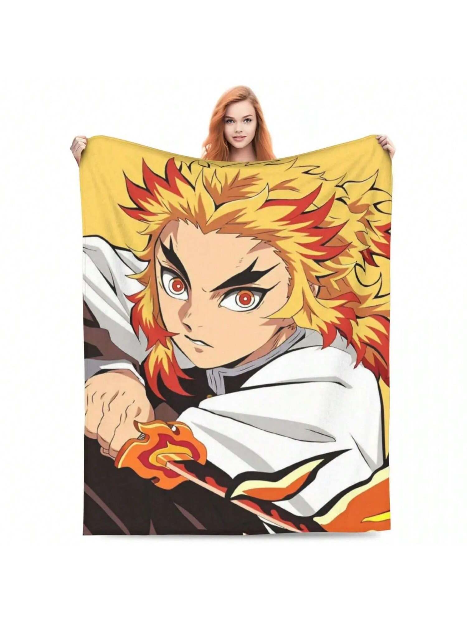 Пламя столп Кёджуро Ренгоку Одеяла Аниме Плюшевое Смешное Теплое Плед Одеяло Для Покрывала Весна_Осень 75X95CM серый