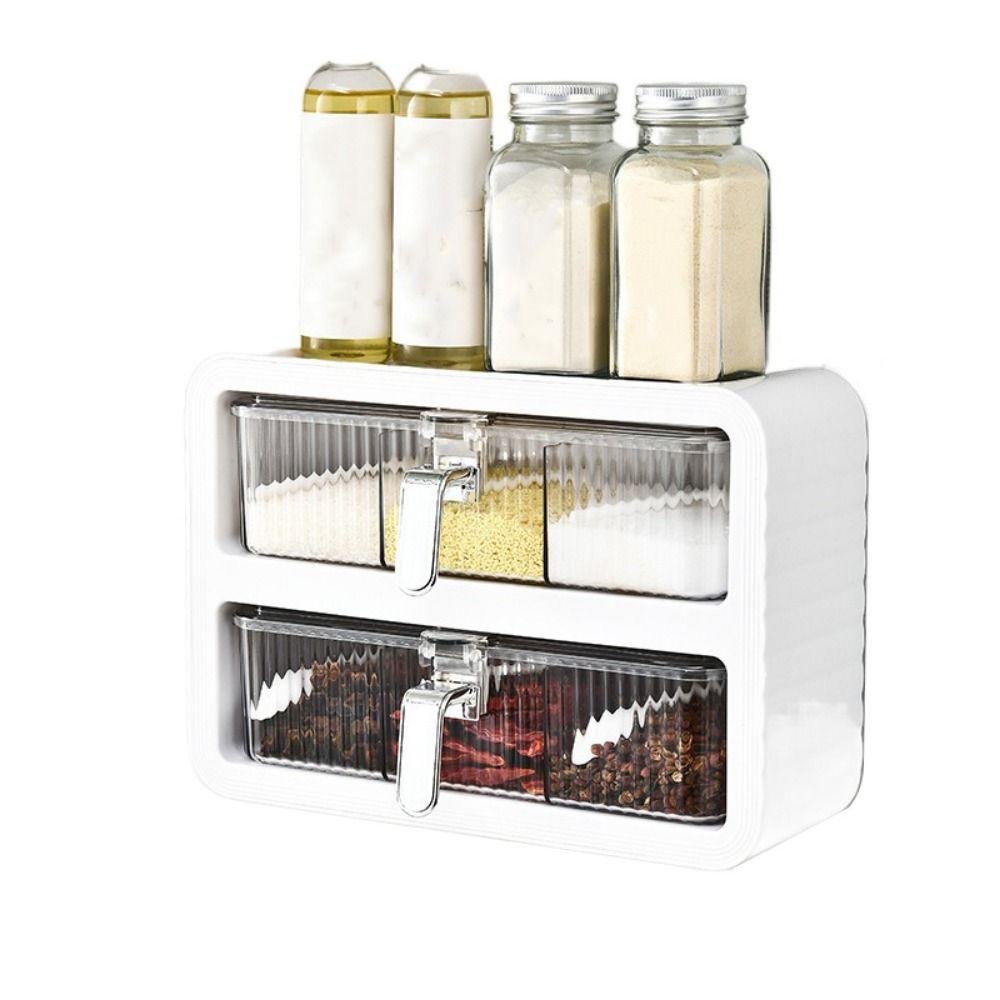 Пластиковая настенная полка для приправ с солью, самоклеящаяся, герметичная, полка для хранения бутылок с приправами, настенная, с ложками, полка для специй белый