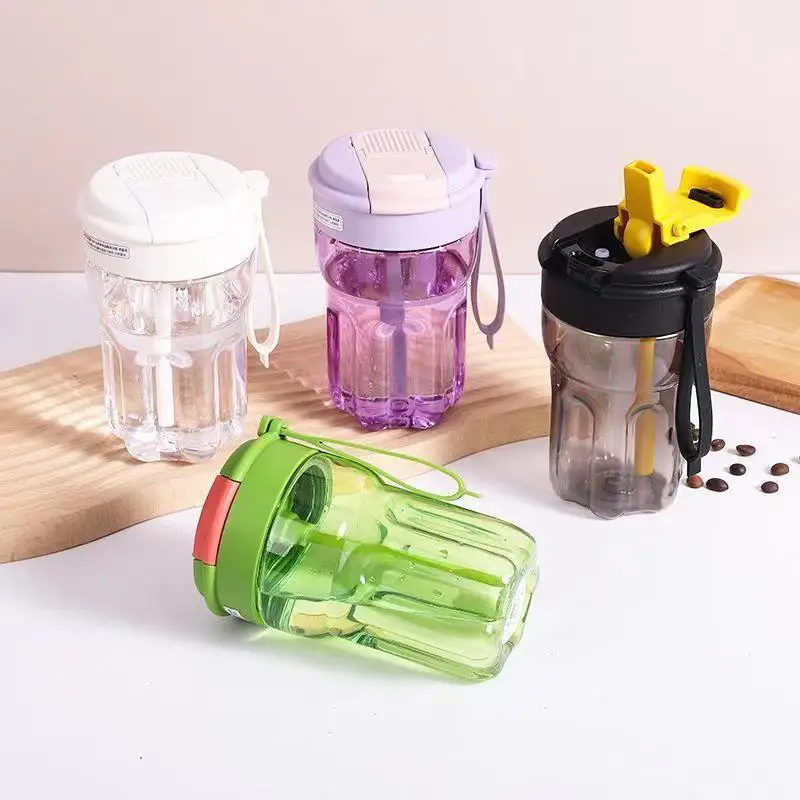 Пластиковая чашка для кофе спортивная водонепроницаемая портативная переносная веревка холодная и термостойкая летняя чашка с соломенной чашкой простая посуда для напитков