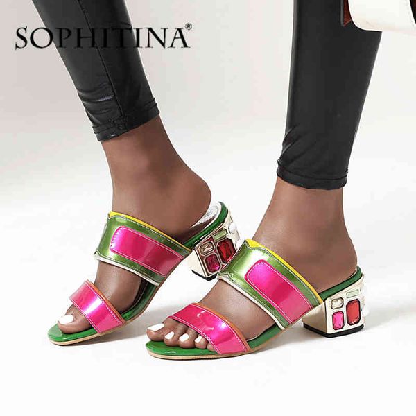 sophitina pumps women fashion special design mixed colors comfortable square heel rome shoes handmade pumps po564 210513, Black