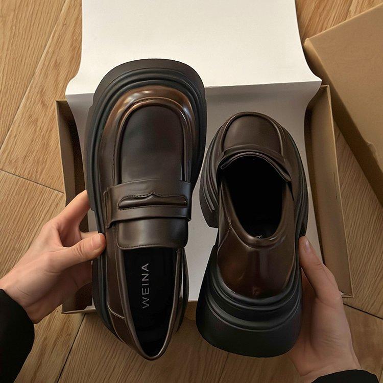 Платформа толстый каблук британский стиль маленькие кожаные туфли женские 2024 новые осень и зима туфли-лоферы женские на одной педали одинарные туфли черные 40 коричневый