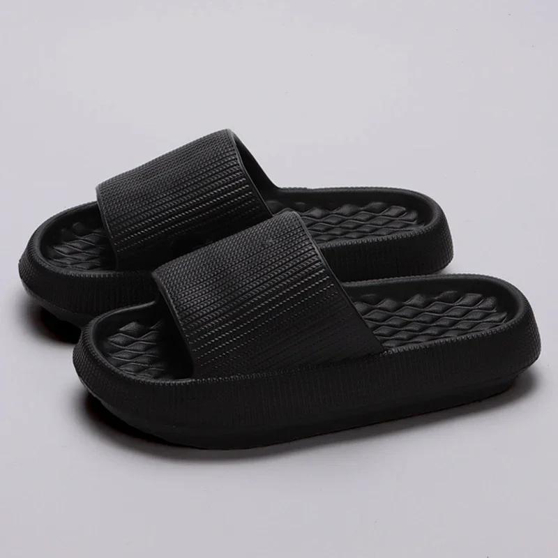 Платформенные облачные тапочки женские лето 2024 легкие с мягкой подошвой платформенные сандалии женские повседневные нескользящие пляжные шлепанцы 36-37 чёрный