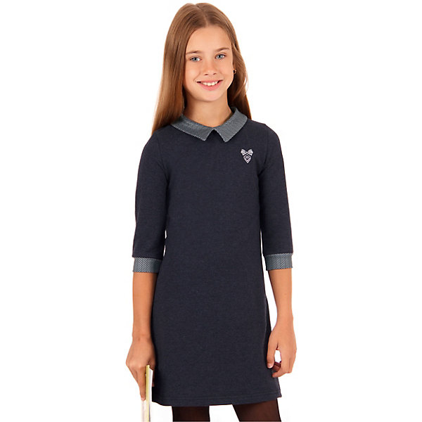 Платье школьное с круглым вырезом и отложным воротником, длинными рукавами. Застегивается на потайную молнию на спинке. Девочке будет удобно и комфортно в школе в таком стильном платье от российского бренда Апрель.