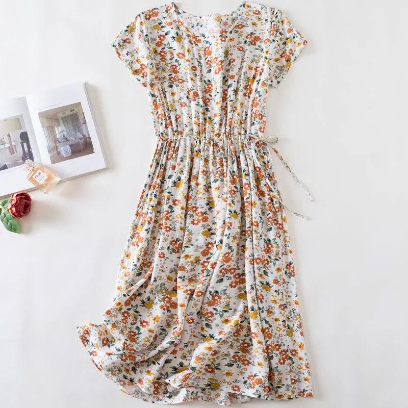Платье Женское Летнее Приталенное С Круглым Вырезом Цветочное Приталенное Пляжные Платья XXXXL