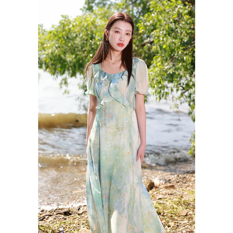 Платье Санкай больших размеров с французскими рюшами из шифона с принтом 3XL 175/104B