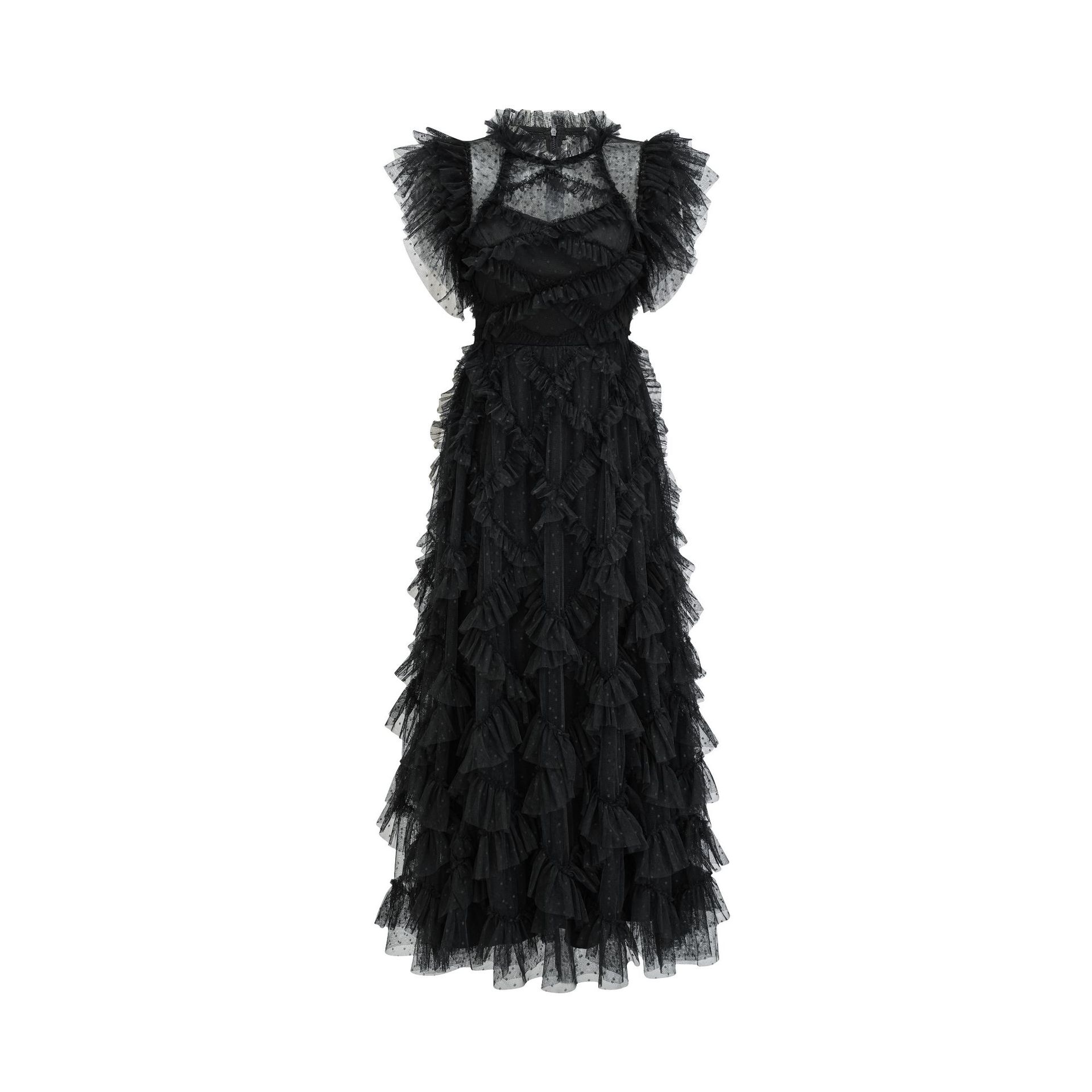 Платье Сладкий Темперамент Вышитое А-силуэтное Юбка Отпуск Полувысокая горловина Новое Платье без рукавов с принтом Женщины XL чёрный