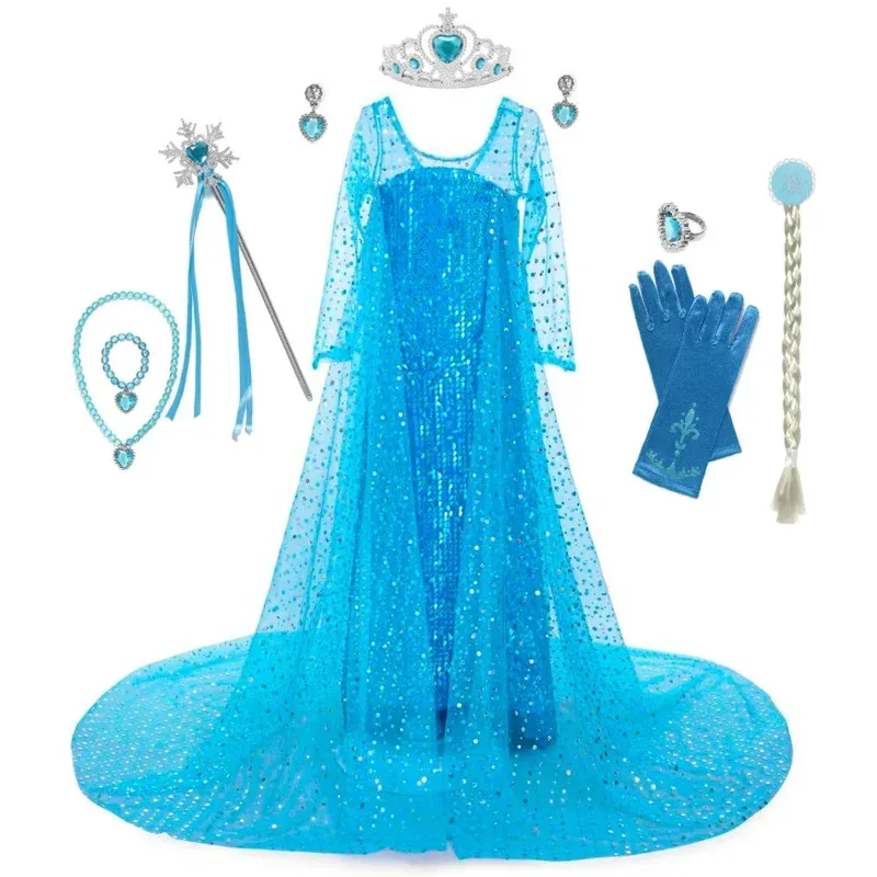 Платье Эльзы для косплея для девочек, праздничное нарядное платье принцессы с блестками Эльзы, бальное платье для косплея, карнавальная маскировочная одежда на день рождения, JYF