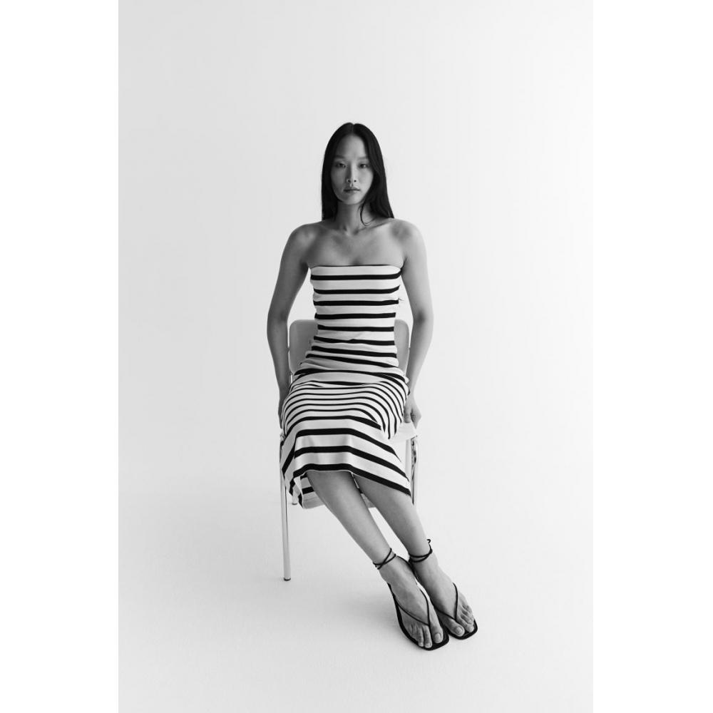 Платье в рубчик без бретелек HM Бело-черная полоска