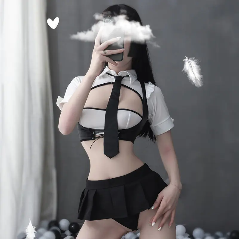 Платье горничной, женское сексуальное нижнее белье для косплея, собранное, большой прозрачный костюм Jk, ролевая игра, Очаровательная нежная...