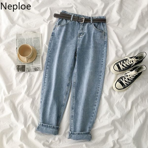 neploe causal straight jeans pants 2020 spring zipper button belt high wiast demin trousers korean fashion demin pants 4a140, Black;white