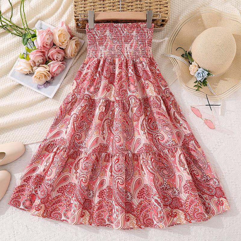 Платье для девочек Детская одежда Осень Новое Праздничный стиль Эластичная талия Длинная юбка 12Y розовый