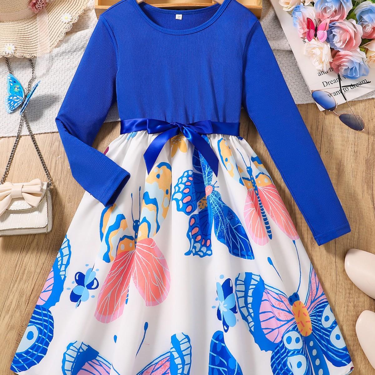 Платье для девочек с синим бантом, летнее платье, милое платье принцессы для детей 170cm синий