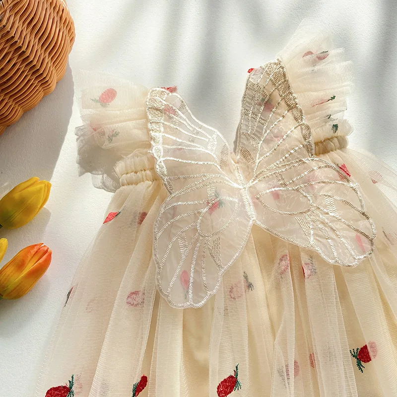 Платье для девочек с трехмерным крылом летние корейские летние платья в горошек для маленьких девочек сетчатые ПУШИСТЫЕ платья принцессы Одежда для девочек