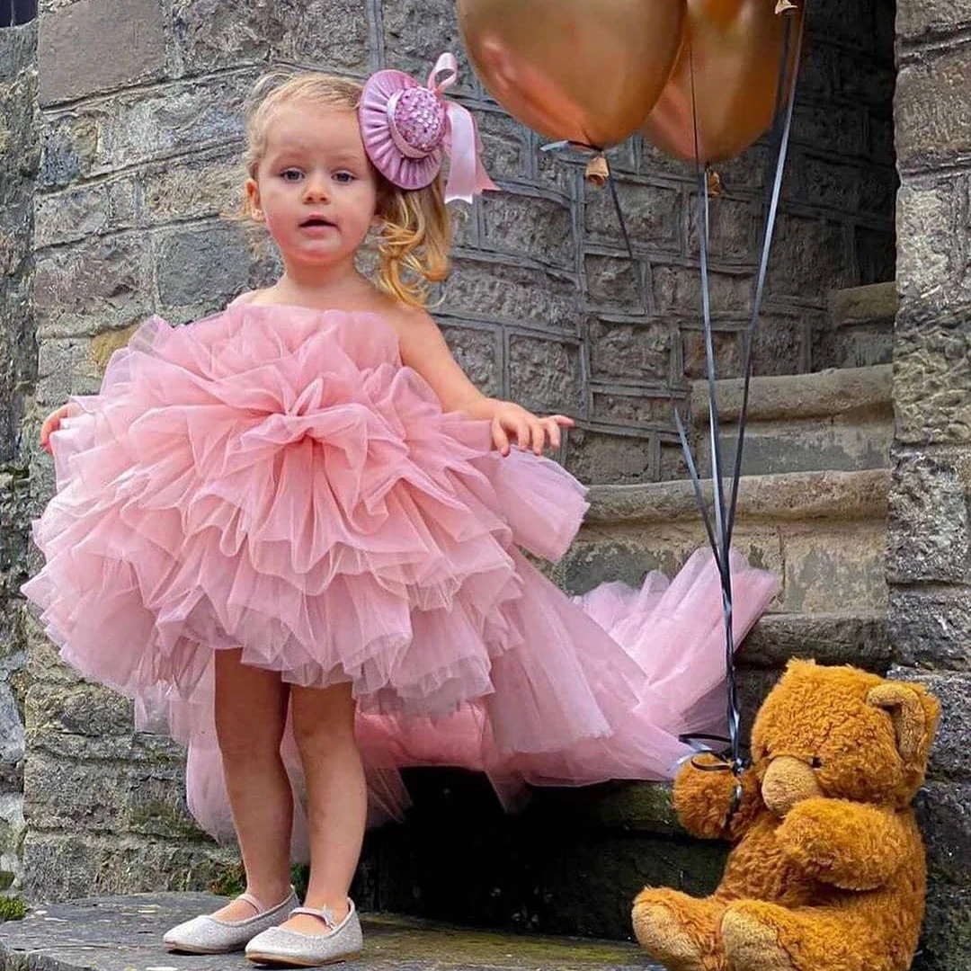 Платье для девочек с цветочным рисунком, розовое Пышное Платье-пачка для маленькой принцессы на свадьбу, день рождения, праздничное платье для первого причастия