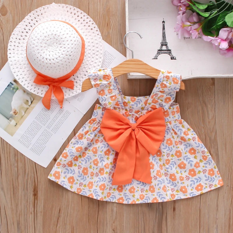 Платье для девочек 2022, Летнее Детское платье, кружевная прострочка, милая маленькая юбка с шапкой и цветочным принтом, платья для малышей 0-24 ...