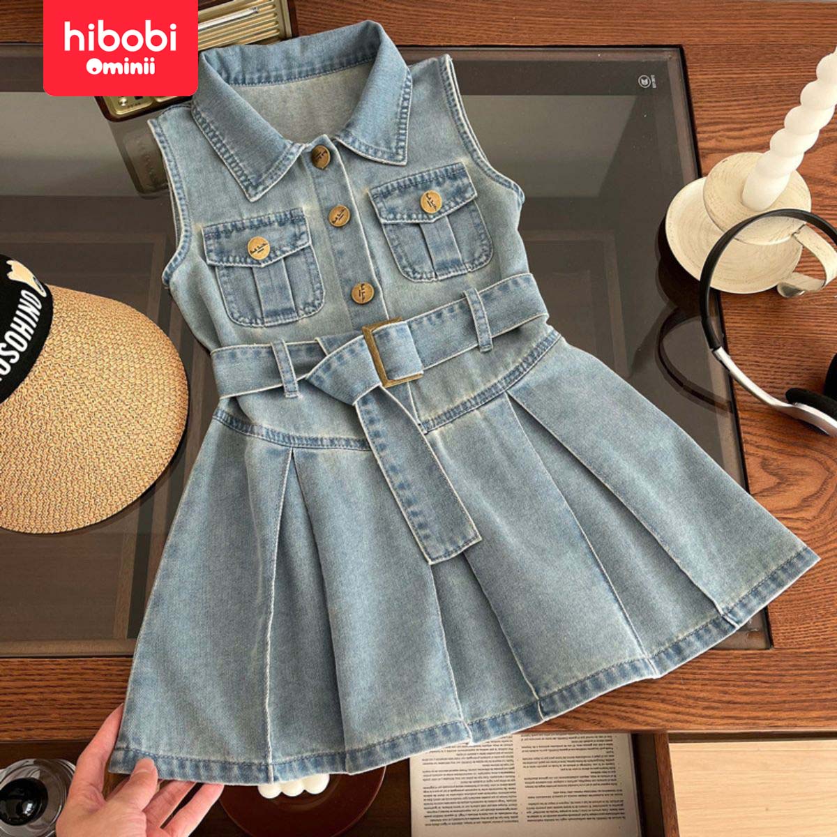 Платье для девочек hibobi без рукавов 2024 года, новый стиль, детская летняя джинсовая юбка, мягкая джинсовая жилетка для маленьких девочек, трендовая юбка 5-6 Y синий