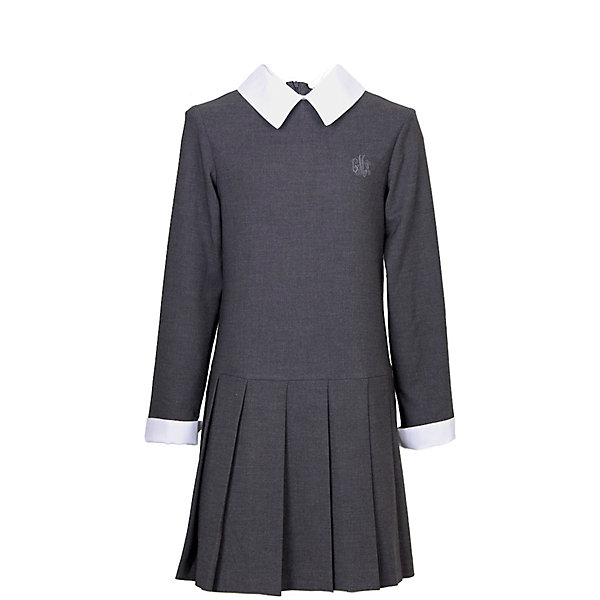Школьное платье с длинным рукавом для девочки. Платье в складку внизу, застегивается на молнию на спинке. Декорировано вышивкой на груди. Манжеты рукавов и воротник контрастного белого цвета.